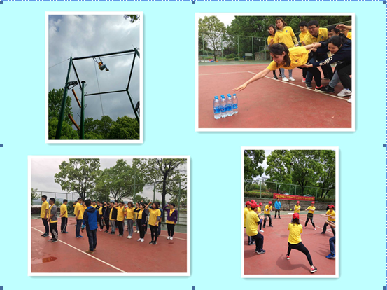 為期一天的拓展訓練內容包括“破冰起航”、“群龍取水”、“鼓動人心”、“智力電網”、“高空跳桿”等活動項目。在“群龍取水”比賽中,大家默契十足,合作精神展現的淋漓盡致,通過隊友的幫助,沖過重重阻礙,終于成功取水,比賽緊張,扣人心弦;在“鼓動人心”比賽中,隊員們統一步調,不斷嘗試、不斷總結、不斷進步,團隊合作精神貫穿始終;在“智力電網”比賽中,為了集體榮譽,大家精確計算,合理謀劃,所有隊員不怕臟不怕累,都以十足的拼搏精神全力以赴,活動場上口號聲、歡呼聲、吶喊聲、掌聲交織成一片;在“高空抓桿”比賽中,隊員們以最大的努力克服心里障礙、發掘自身潛力,冷靜面對、挑戰自我,深刻體會了團隊協作、信任互助和自信的重要性,承受住壓力,戰勝了困難,用汗水書寫了弘揚五四的華彩樂章。