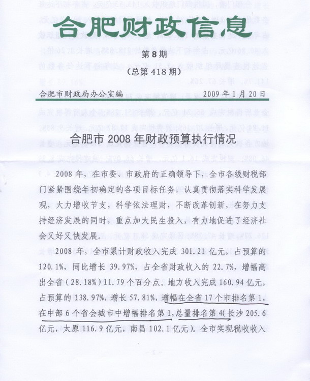 合肥市2008年財政預算執行情況