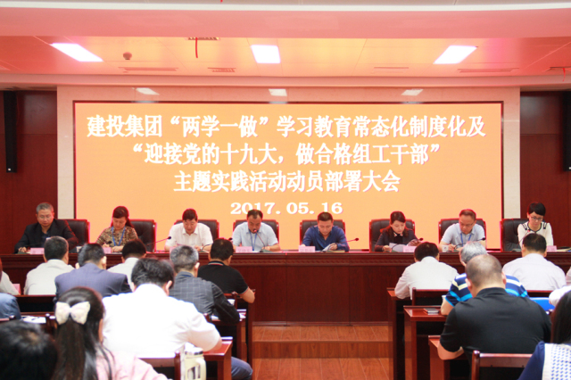 2017年5月16日上午,建投集團組織召開 “兩學一做”學習教育常態化制度化及“迎接黨的十九大,做合格組工干部”動員部署大會,安排布置“兩學一做”相關工作,統一思想,明確任務,落實責任。集團公司黨委書記吳曉東主持會議并作動員講話。集團公司中層以上領導干部、全體黨員,所屬企業黨組織書記及黨務、組織人事部門負責人等80余人參加了會議。