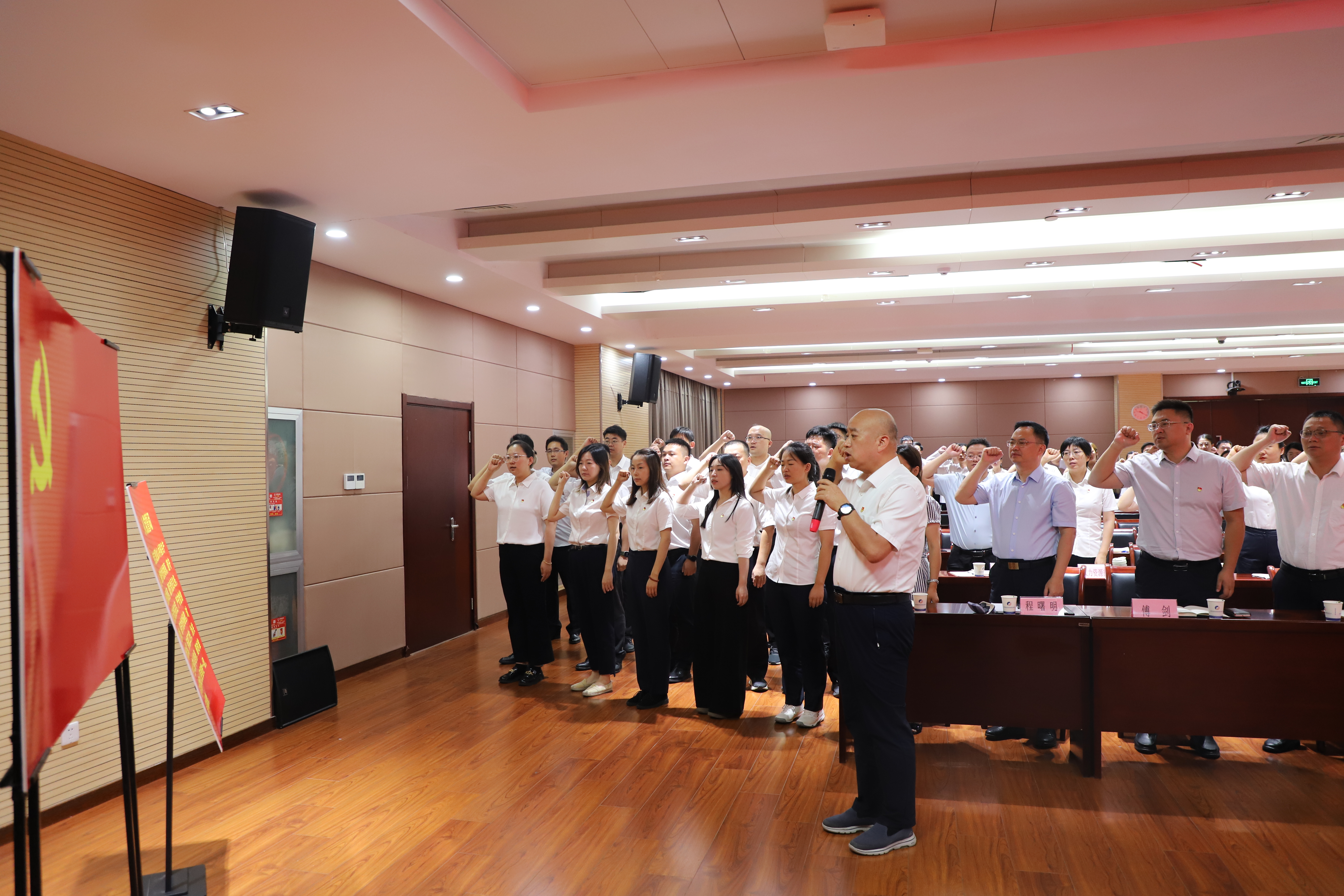 會議邀請部分黨員代表重溫入黨志愿書。光榮在黨50周年黨員、監測中心退休職工費業好同志,市國資委系統優秀共產黨員、金太陽公司尹海同志,近年新發展黨員代表、泊車集團陶震同志,集團選派駐村第一書記魏皓同志分別對照入黨時的莊嚴承諾和奮斗決心,分享了堅守初心、履職盡責的經歷和感悟,引發在場黨員共鳴。會議還舉行重溫了入黨誓詞儀式,集團黨委書記、董事長雍鳳山帶領新發展黨員及與會全體黨員,面向黨旗莊嚴宣誓,激勵每一位黨員不忘初心、擔當實干。