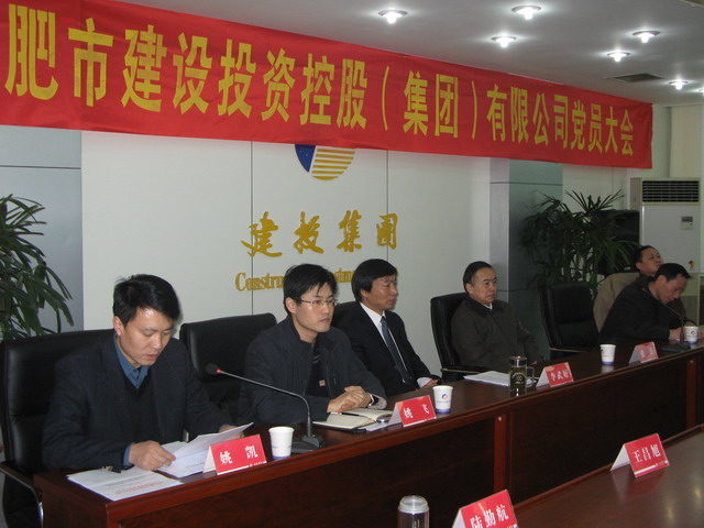 2008年1月18日上午,中共合肥市建設投資控股(集團)有限公司黨員大會隆重召開。合肥市國資委黨委、市委組織部有關領導,建投集團領導班子成員及集團機關全體黨員共50余人參加會議。本次大會的主要任務是按照《黨章》和《中國共產黨基層組織選舉工作暫行條例》的規定,選舉產生集團公司第一屆黨委委員。